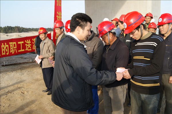 市总领导到南澳大桥工地慰问外来工