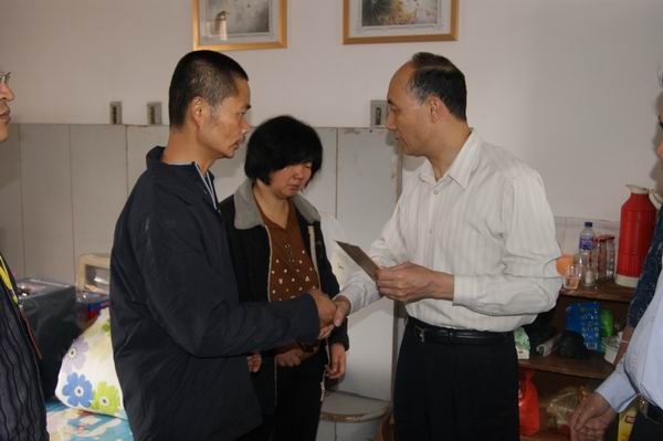 在中孚集团公司,王扬泽代表市总工会看望慰问28户受灾职工,为他们发放慰问金每户1000元,鼓励他们要树立信心,战胜困难,并与在场的干部职工座谈交流,详细了解企业情况及受灾职工的生活、住房等情况,王扬泽表示,市总工会将继续跟踪、关注他们的生产生活,根据实际情况为他们提供生活、子女读书、医疗等方面的后续帮扶,同时将积极推动解决受灾职工的妥善安置问题。