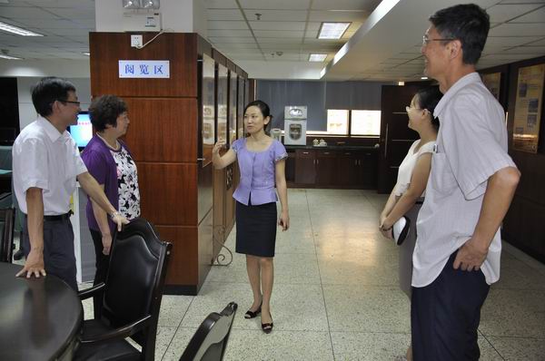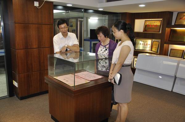 建行汕头市分行胡清芳副行长会陪同陈菲副主席一行参观市分行荣誉室。建行汕头市分行工会负责人通过自制的幻灯片,以生动翔实的图片将市分行工会基层组织规范化建设情况和工作成效向市总工会领导进行了汇报。