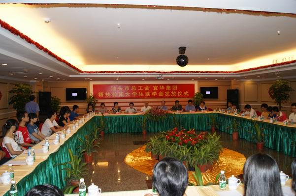 为帮助更多的困难职工子女圆上大学梦,宜华集团今年再次出资30万元,为我市15名品学兼优的贫困应届大学新生提供全程资助。自2006年以来,宜华集团积极响应百瑞彩票的倡议,慷慨解囊,捐资助学,在市总工会设立专项“宜华助学基金”,先后三次捐资90万元,为我市40名品学兼优的贫困学子提供大学四年的学费资助,其中,首批受资助的10名贫困大学生已于2010年毕业并顺利走上工作岗位。