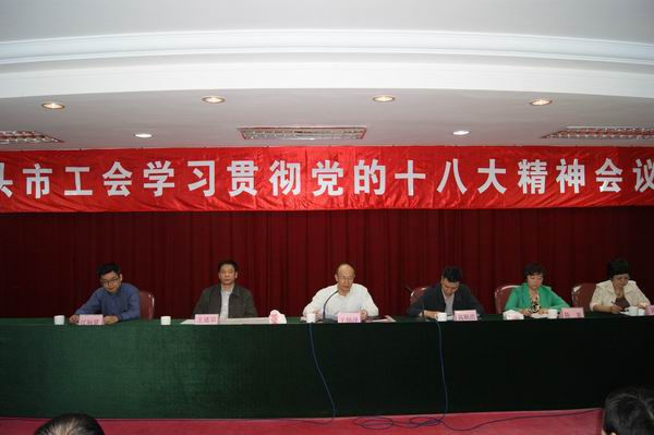 市总工会党组书记、副主席高耿浩主持了会议,他要求各级工会组织要第一时间贯彻落实本次会议的内容,把王扬泽同志的要求落到实处,认真抓好十八大精神的学习贯彻工作,认真做好维护职工队伍稳定工作,认真做好“送温暖”活动的准备工作,认真做好今年工作的总结,明年工作的谋划。