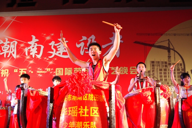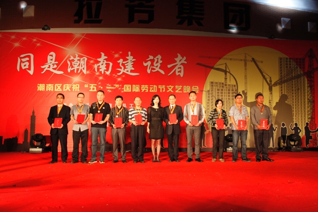 4月25日晚,区总工会、区人社局联合在拉芳家化股份有限公司广场隆重举办潮南区庆祝“五一”国际劳动节表彰大会暨“同是潮南建设者”文艺晚会。区领导为荣获2012年度潮南区劳动关系和谐企业示范单位、企业优秀员工、十佳异地务工人员的代表颁发奖牌、奖章和证书。颁奖仪式后,文艺演出在潮汕大锣鼓《鼓扬新风》的激昂鼓声中开场。演出节目丰富多采,有器乐合奏、歌舞、快板、小品、潮剧和魔术等表演形式,艺术地展现了广大职工与时俱进的精神风貌,唱响了“同是潮南建设者”的主旋律。