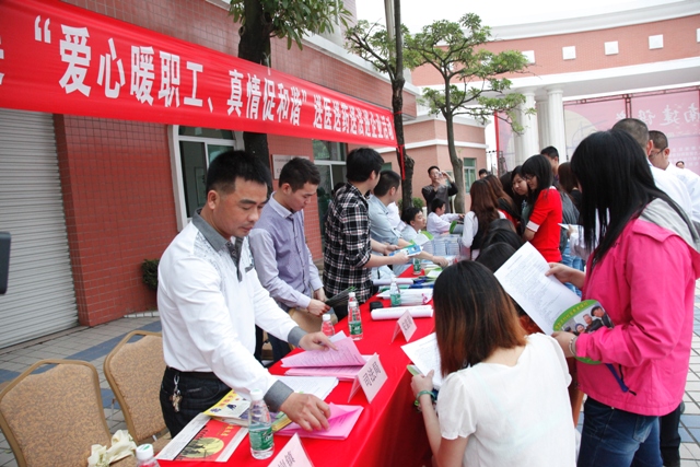 4月25日,区总工会、区司法局、计生局、卫生局、人社局、安监局、胪岗镇工会等单位在拉芳家化股份有限公司开展“爱心暖职工、真情促和谐”送法送医送药活动。为职工进行义诊、健康咨询、配送药品,提供有关劳动合同、社会保险、职工权益等方面的咨询服务,得到了职工的欢迎和赞誉。