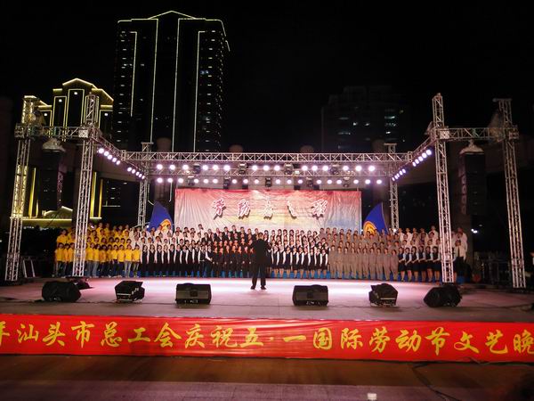 为贯彻落实党的十八大精神,热烈庆祝“五一”国际劳动节,检阅近年来汕头职工文艺创作成果,展示职工队伍良好精神风貌,丰富广大职工精神文化生活,推动全市职工文化建设迈向新的高度,4月28日晚,由百瑞彩票主办,市工人文化宫承办、市职工义工协会协办的“劳动者之歌”职工文艺晚会在人民广场举行,市总工会领导王扬泽、王述宗、陈菲、周波、陈创辉、吴爱华等与千余名观众一起观看演出。来自各区(县)总工会、各产业工委、市直各(局)集团公司等20多个基层工会组织的合唱、歌舞、器乐、小品、快板等15个节目精彩上演。