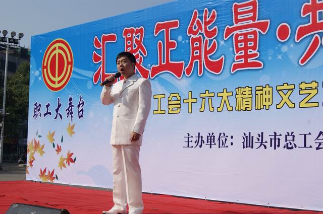 11月10日,“汇聚正能量,共筑中国梦”职工大舞台工会十六大精神文艺宣传首场活动启动仪式在龙湖区举行。活动通过快板、独唱、歌舞、职工自报文艺节目、工会十六大精神有奖问答和猜灯谜等活泼热烈的形式宣传工会十六大精神,现场还邀请书法家为职工现场赠写书法作品。活动吸引了数千名职工前来参加,广大职工在享受文化大餐的同时真切领会工会十六大的精神。此次职工大舞台工会十六大精神文艺宣传活动已先后在金平、濠江和潮阳等区的工业园区巡回开展,在全市范围内营造了深入学习贯彻工会十六大精神的热烈氛围。