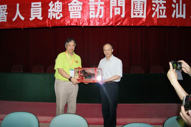香港房屋署人员总会副主席王国强作了讲话。市总工会副主席周波介绍汕头市职工维权工作情况;香港房屋署人员总会会务主任吴彩荣介绍该会有关工作情况。最后,王扬泽与司徒志荣互赠纪念品。市外事侨务局副局长陶小平、市总工会在家的领导与各部门负责人参加了交流座谈会。