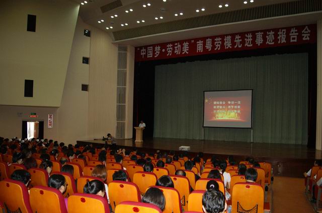 为在全社会弘扬劳模精神、劳动精神和工人阶级伟大品格,动员激励广大干部职工为实现中华民族伟大复兴的中国梦和“三个定位、两个率先”目标建功立业,6月15日,省委宣传部和省总工会联合组织南粤劳模先进事迹报告团来到汕头,举行主题为“中国梦•劳动美”报告会,6名优秀劳模用朴实的语言、真挚的情感分别介绍了他们在各自不同岗位上的感人事迹,赢得了在场一千多名劳模代表、职工代表的热烈掌声。