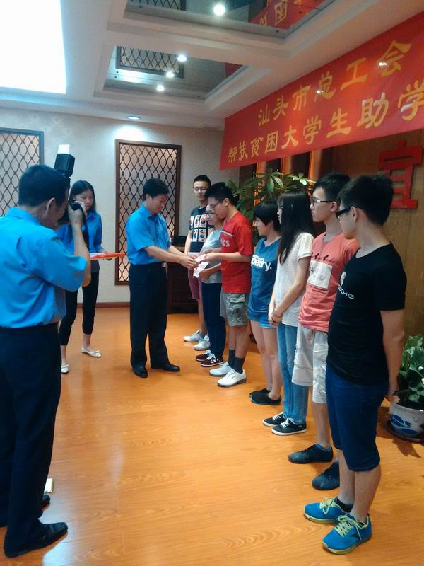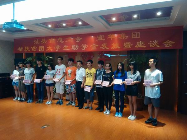 8月14日,市总工会与宜华企业(集团)有限公司在澄海区莱芜宜华木业城举行帮扶贫困大学生助学金发放暨座谈会。