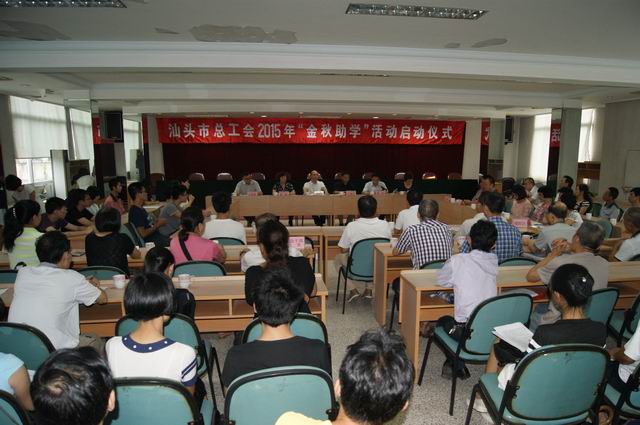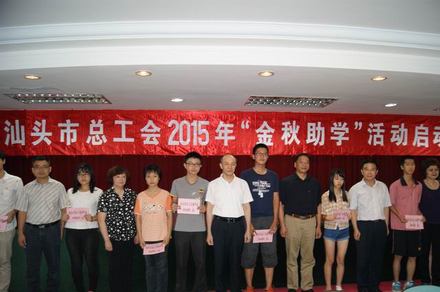 8月13日,市总工会启动“金秋助学”活动仪式,来自各区(县)总工会、市直有关(集团)公司工会、基层工会的同志和受资助的困难职工及其子女共90多人参加了启动仪式。活动仪式上,来自汕头市塑料皮革公司副总理林德雄、市华联(集团)京汕联营公司工会主席颜昌豪、学生黄广扬代表市困难企业行政、基层工会干部、贫困大学新生在会上发言,8名贫困大学新生代表困难职工子女上台领取助学金。