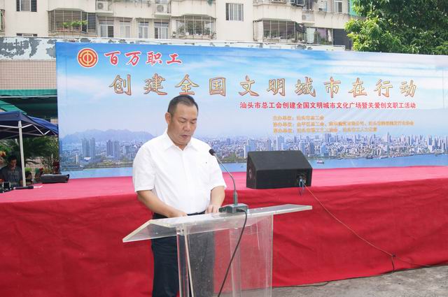 汕头开展创建全国文明城市工作三个多月来,我市各级工会组织贯彻落实市委、市政府工作部署及市党委群团工作会议精神,动员和引领广大职工在各自岗位上积极投身创文工作,充分发挥了工人阶级主力军和先锋队作用。在这短短的一百多天里,我市城乡面貌迅速出现可喜变化,得到了市民及社会各界的充分肯定,创文工作取得了阶段性成果。创文永远在路上,创文工作要久久为功。市总工会于8月25日在金平区南华建筑有限公司举办汕头市百万职工创建全国文明城市在行动系列活动,旨在对我市各级工会组织推进百万职工创建全国文明城市工作进行再动员、再部署、再落实,号召百万职工在“创文强管”九大提升行动中积极作为、建功立业,共同将文明创建持之以恒推进下去。