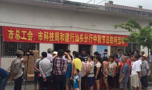 中秋佳节即将来临之际,市人大党组成员、市总工会主席陈向光于9月8日上午带队到扶贫挂钩点关埠镇路外村开展以“扶贫济困,奉献爱心”为主题的干部与贫困户结对帮扶和慰问活动,市总工会、市科技局和建行汕头分行领导,市总工会机关各科室、直属事业单位主要负责人,区委区政府和镇委镇政府有关领导参加了慰问活动。