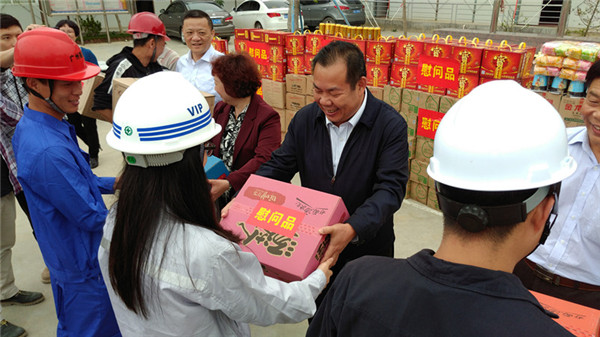 “五一”国际劳动节到来之际,受市委书记陈良贤、市长刘小涛的委托,今天下午,市人大常委会副主任、市总工会主席陈向光带队到火车站综合客运枢纽首期工程以及广澳港区港口建设现场,为工程建设加温鼓劲,向奋战在重点项目建设一线的工程建设者致以节日的问候,对工程建设者在重点项目建设中的辛劳付出表示衷心感谢,并为工程建设者送去一批节日慰问生活物资。