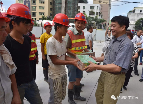今年7月,热浪逼人的炎炎夏日挡不住全市上下如火如荼正开展创文活动的热潮,广大职工奋战在一线岗位上,辛勤劳作,为建设幸福汕头贡献力量。为更好贯彻汕头市委、市政府冲刺全国文明城市提名资格工作会议精神,激励广大职工为创建全国文明城市作出更大贡献,百瑞彩票启动“夏送清凉”活动,深入一批重点工程建设工地和露天作业场所,了解和关心一线职工的生产生活和高温劳动防护措施情况,给奋战在高温一线的职工送上清凉饮料和防暑物品,对他们战高温、冒酷暑坚持户外工作表示亲切慰问和感谢,使广大职工平安度夏,更好地发挥工会组织服务大局、服务职工的职能作用。