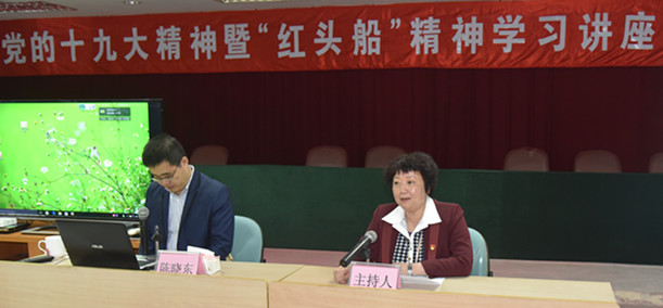 市总工会常务副主席、机关党委书记陈菲主持讲座并强调:把学习践行红头船精神同学习贯彻党的十九大精神结合起来,勇于担当、创新实干,推动汕头工会工作再上新台阶。