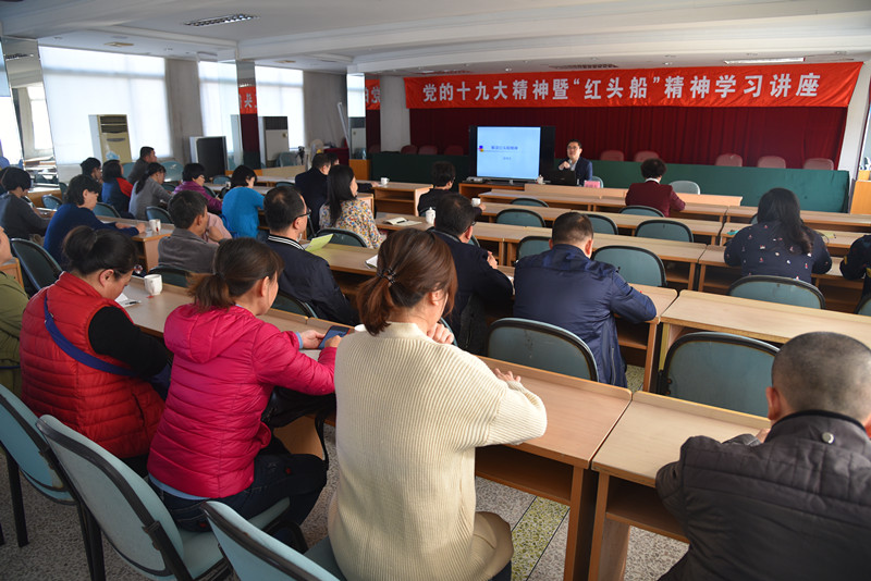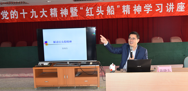 12月11日下午,市总工会举办十九大精神暨红头船精神学习讲座,邀请中共汕头市委党校、汕头行政学院教研室主任陈晓东为大家解读红头船精神。市总机关全体人员、直属单位党员干部70多人到场聆听讲座。