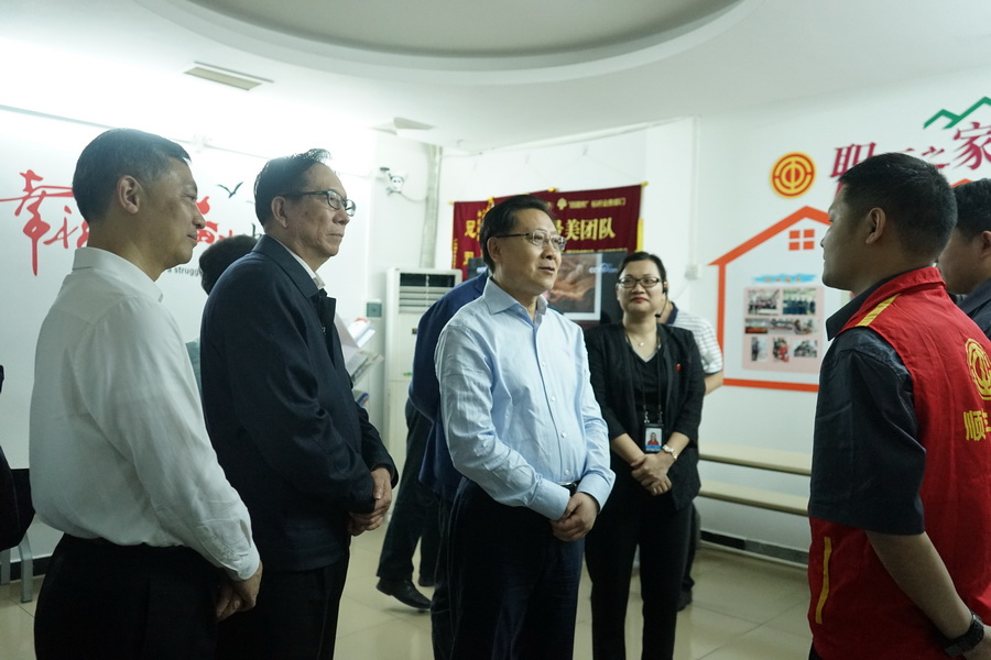 王东明同志在广州顺丰速运有限公司越秀分部,慰问快递小哥代表。