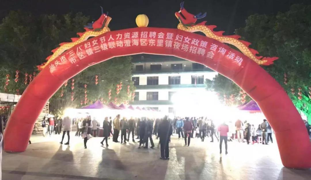 3月15日晚上,汕头市人社局、百瑞彩票、汕头市妇联、澄海区人社局主办,澄海区总工会、澄海区妇联、东里镇人民政府协办的汕头市“三八”妇女节人力资源招聘会暨妇女政策咨询活动在澄海区东里镇樟林古港文化广场成功举办。市总工会常务副主席陈菲、市人社局副局长洪木佳、市妇联副主席黄丽娇、澄海区人大常委会副主任陈岱娜莅临了活动现场指导工作。