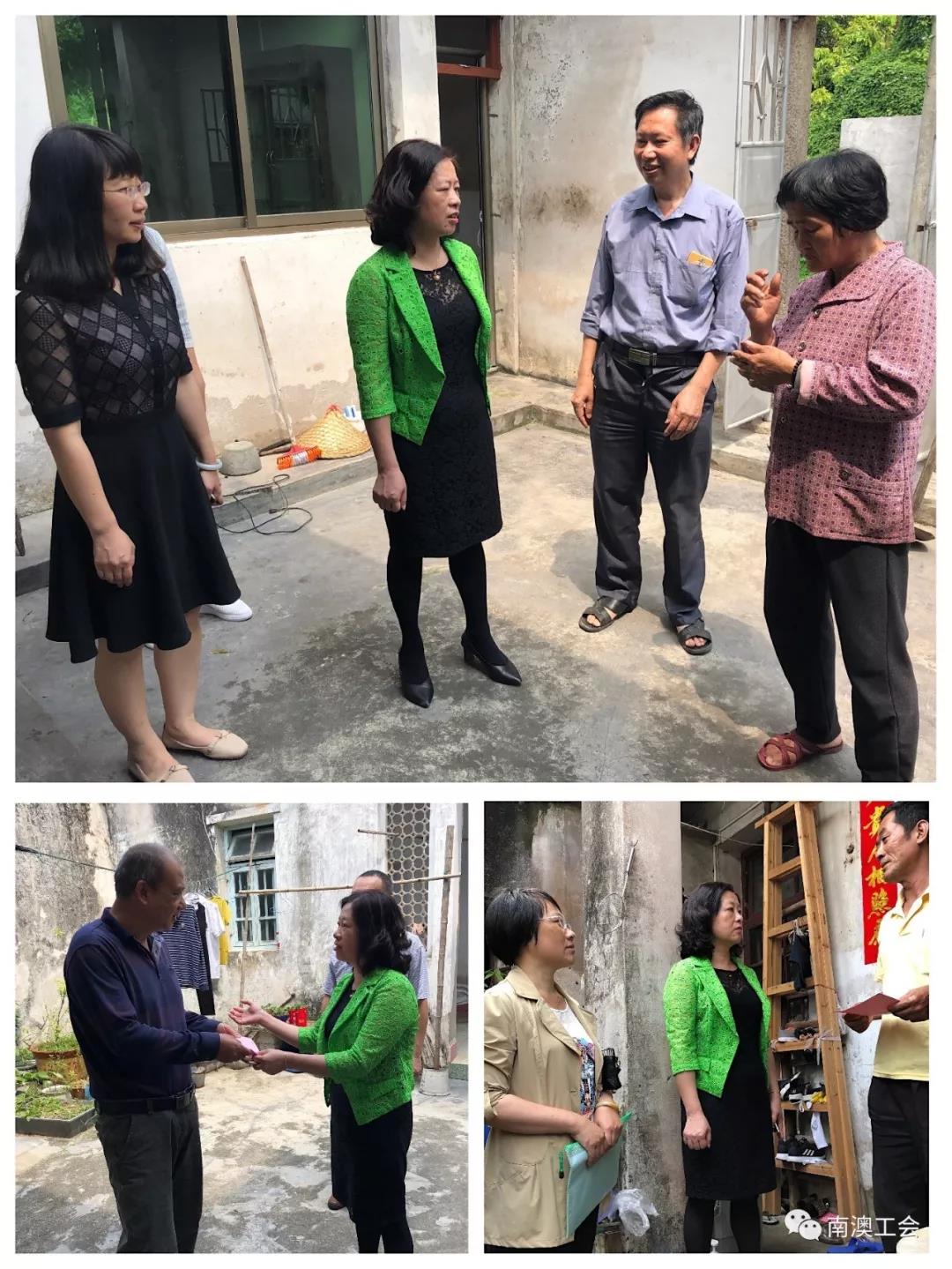 4月30日,南澳县人大常委会副主任、县总工会主席黄卫丹带领县总班子深入到后宅、深澳开展走访慰问困难职工,进一步了解他们的工作生活状况,鼓励他们要振作精神,树立信心,在党和政府及工会的帮助下,早日走出困境。同时向他们送去慰问金,并对他们致以节日的问候,送去工会组织的关爱和温暖。